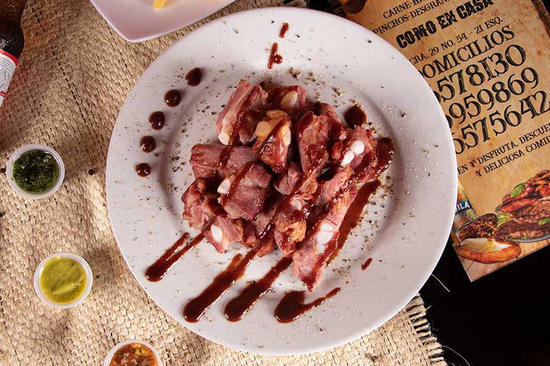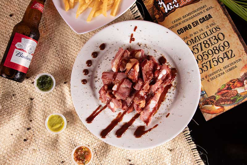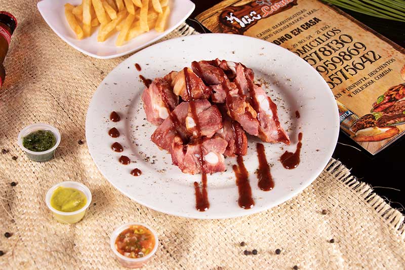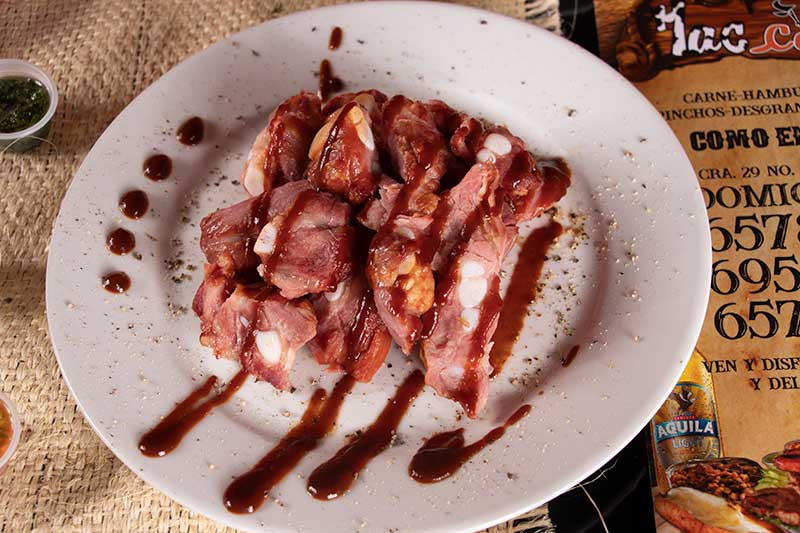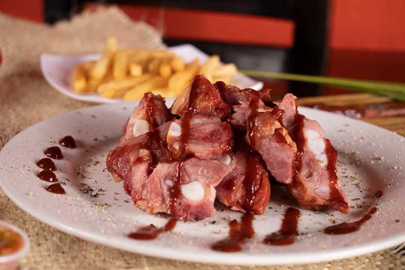 Exquisita costilla de cerdo Ahumada, acompañada de yuca arepa